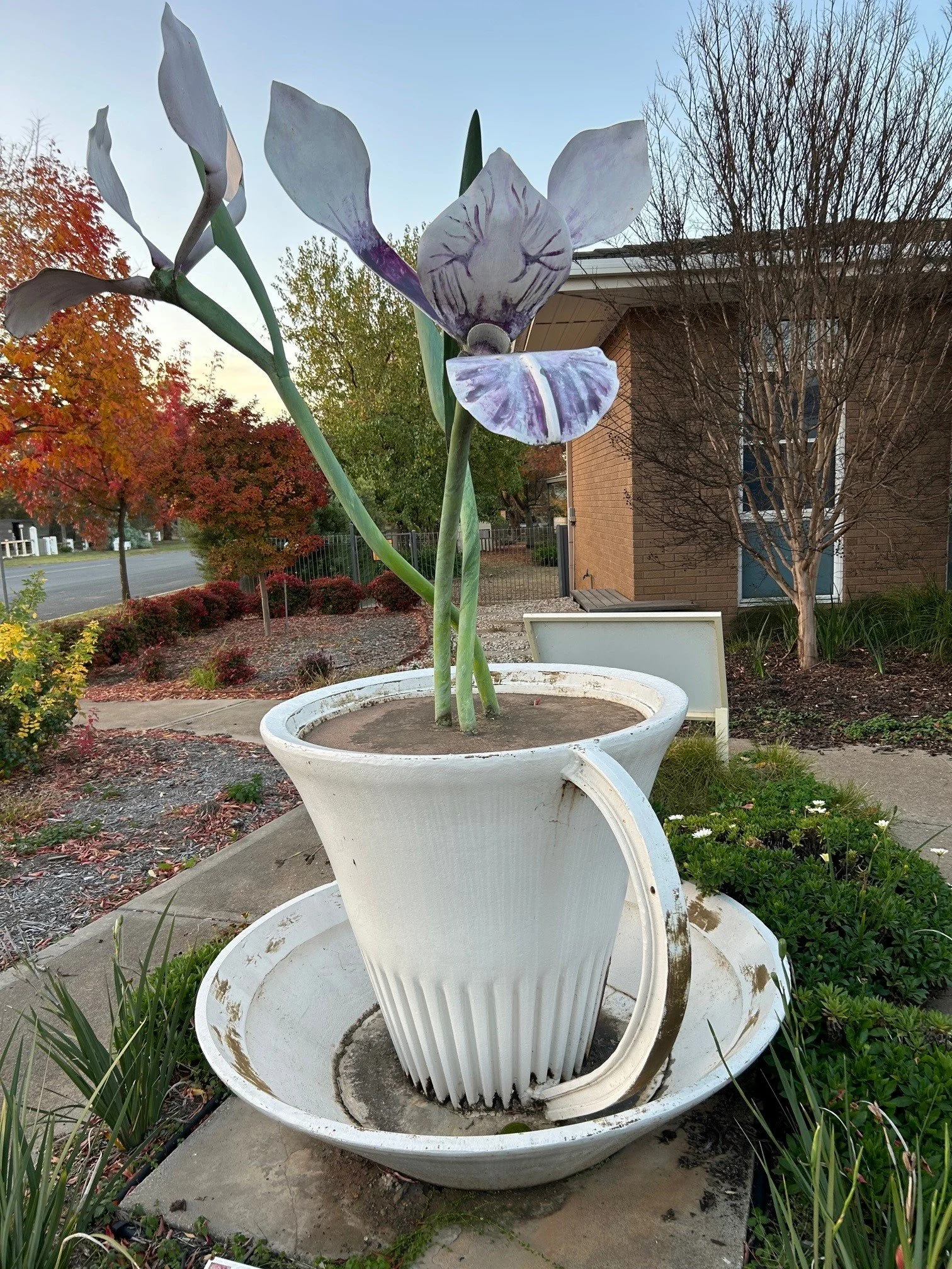 To celebrate and raise awareness of the orchid, and improve the streetscape for locals and travellers alike, the Oaklands Country Women's Association commissioned a sculpture of Oaklands Donkey Orchid in a teacup. The sculpture stands at approximately 1.5 metres tall.